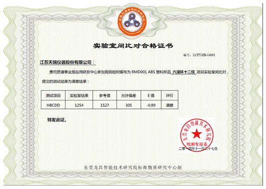 附錄1:實驗室間比對合格證書(六溴環十二烷)