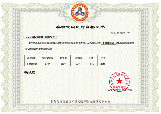 附錄3:實驗室間比對合格證書(十溴聯苯醚)