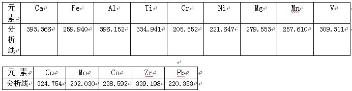 根據ICP軟件譜線庫提供所有元素不同譜線,首先選擇被測元素靈敏度高的譜線,其次考慮不受樣品基體及被測元素相互之間干擾小的譜線的原則,選擇分析線如下。