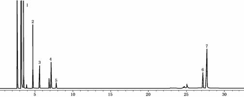 1. 苯 2.甲苯 3.間二甲苯 4.鄰二甲苯 5.正十四烷 6.甲苯二異氰酸酯(I)7. 甲苯二異氰酸酯(II)9.己二異氰酸酯 10.異佛爾酮二異氰酸酯(I)11. 異佛爾酮二異氰酸酯(II) 12.二苯甲烷二異氰酸酯