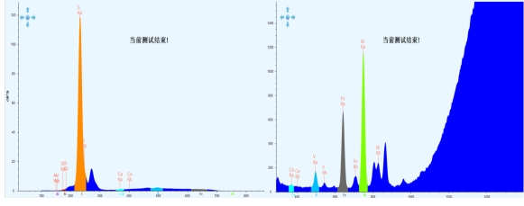 圖3為測試中使用的一個未知樣(命名石油焦1#)的測試譜圖,在譜圖中可以明顯觀察到S、V、Fe、Ni元素的特征峰,并且在此樣品中還含有微量的Al、Si、Ca、Zn元素。使用該樣品進行重復性測試后,檢測結果中S、V、Fe、Ni元素的重復性分別達到了0.28%、3.33%、1.10%和0.71%,表明該儀器對石油焦樣品具有很好的檢測效果。