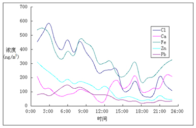 常規(guī)大氣重金屬監(jiān)測手段只監(jiān)測重金屬元素的日平均濃度的測量,但是大氣重金屬隨著氣象參數與溫度在每天的不同時間段有著較大的變化,日平均濃度無法反應這些變化。大氣重金屬實時在線監(jiān)測可以實現每天重金屬濃度的小時值測定,有利于分析總結大氣重金屬和非重金屬元素的日變化規(guī)律。