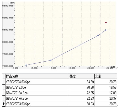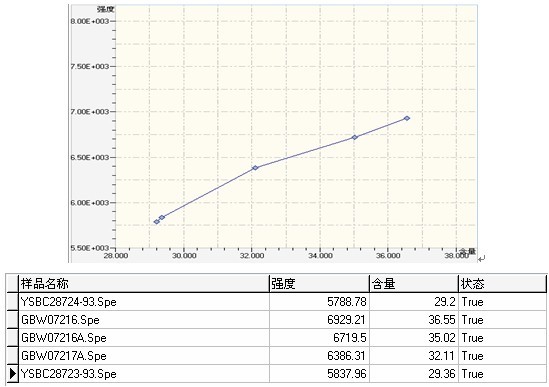 以下使用EDX 3600B型對螢石國標樣GBW07252實際測試的所得的譜圖,工作曲線等相關(guān)數(shù)據(jù):