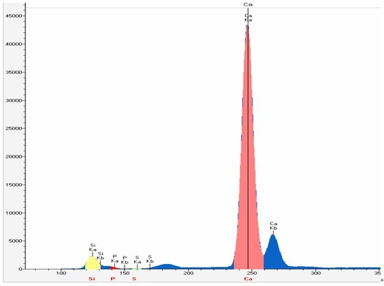 常呈菱面體。遇冷稀鹽酸時會慢慢出泡。有的白云石在陰極射線照射下發(fā)橘紅色光。白云石是組成白云巖和白云質(zhì)灰?guī)r的主要礦物成分。白云石可用于建材、陶瓷、玻璃和耐火材料、化工以及農(nóng)業(yè)、環(huán)保、節(jié)能等領(lǐng)域。主要用作堿性耐火材料和高爐煉鐵的熔劑;生產(chǎn)鈣鎂磷肥和制取硫酸鎂;以及生產(chǎn)玻璃和陶瓷的配料。白云石含量大概為:CaO 30.4%、 MgO 21.9%、 CO2 47.7%。使用EDX3600B對它們進行測試。